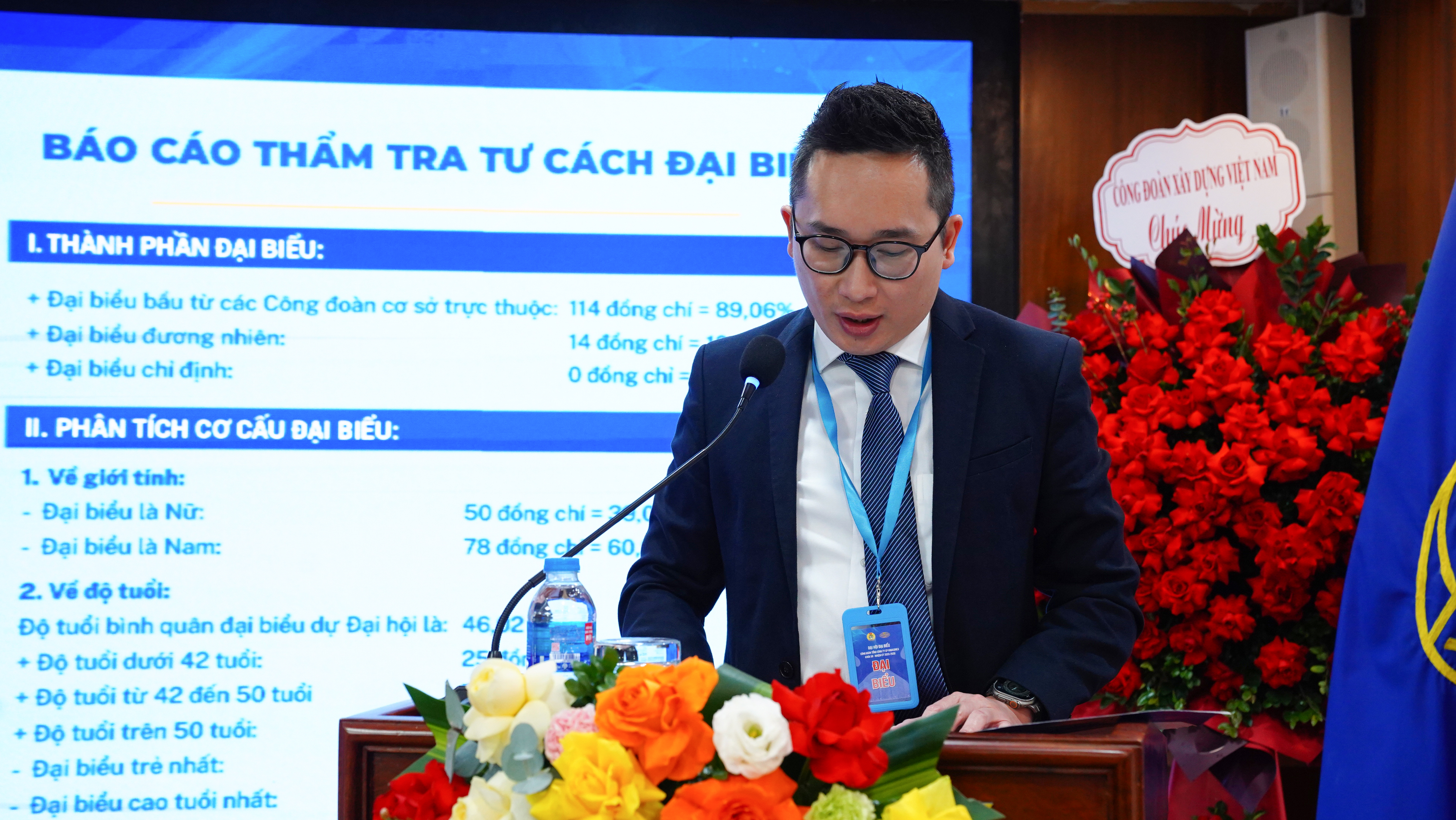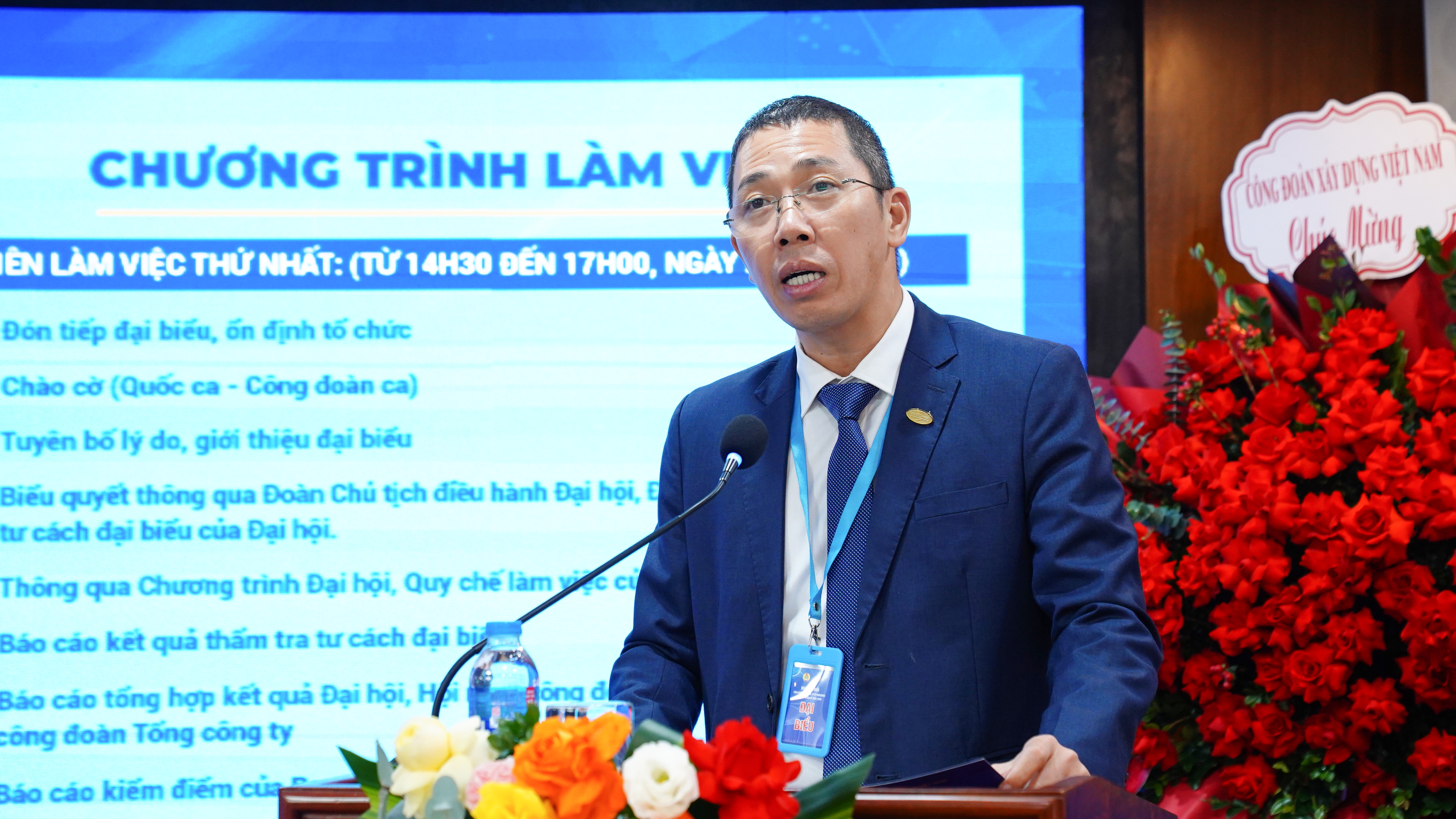 Các đại biểu tham dự Đại hội thực hiện Nghi lễ Chào CờĐồng chí Phạm Hoài Phương - Ủy viên BCH Đảng bộ Bộ Xây dựng, UV BCH Tổng Liên đoàn Lao động Việt Nam, Chủ tịch Công đoàn Xây dựng Việt Nam và đồng chí Nguyễn Hữu Tới - Bí thư Đảng uỷ, Chủ tịch HĐQT tham dự và chỉ đạo Đại hội.Đại hội có sự tham dự của Ông Nguyễn Xuân Đông, Thành viên HĐQT TCT, các đồng chí nguyên Chủ tịch Công đoàn TCT cùng 128 đại biểu chính thức đại diện cho 4,000 CBCNV, người lao động trên toàn hệ thốngQuang cảnh Đại hội Thay mặt Công đoàn Xây dựng Việt Nam, đồng chí Phạm Hoài Phương, Chủ tịch Công đoàn Xây dựng Việt Nam tặng hoa chúc mừng Đại hội Thay mặt ban lãnh đạo, đồng chí Nguyễn Hữu Tới, Bí thư Đảng uỷ, Chủ tịch HĐQT TCT; ông Nguyễn Xuân Đông, thành viên HĐQT, Tổng Giám đốc TCT tặng hoa chúc mừng Đại hội Đoàn chủ tịch điều hành Đại hội Đồng chí Nguyễn Mạnh Cường, Chủ tịch Công đoàn TCT Tổng công ty khoá VI phát biểu khai mạc Đại hội Đồng chí Nguyễn Hải Lâm, Phó chủ tịch Công đoàn TCT khoá VI báo cáo kết quả phiên làm việc thứ nhất đã được diễn ra vào ngày 27/11/2025Đồng chí Nguyễn Quốc Huy, Phó Chủ tịch Công đoàn TCT khoá VI trình bày báo cáo phương hướng nhiệm vụ Công đoàn TCT khoá VII, nhiệm kỳ 2025 - 2030