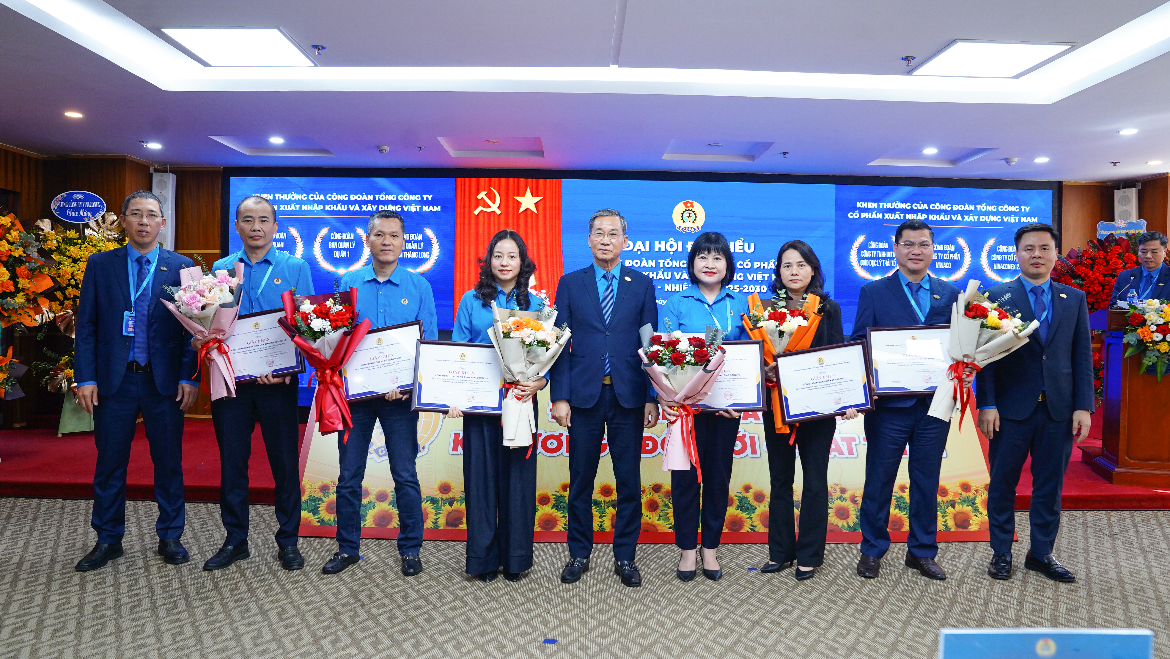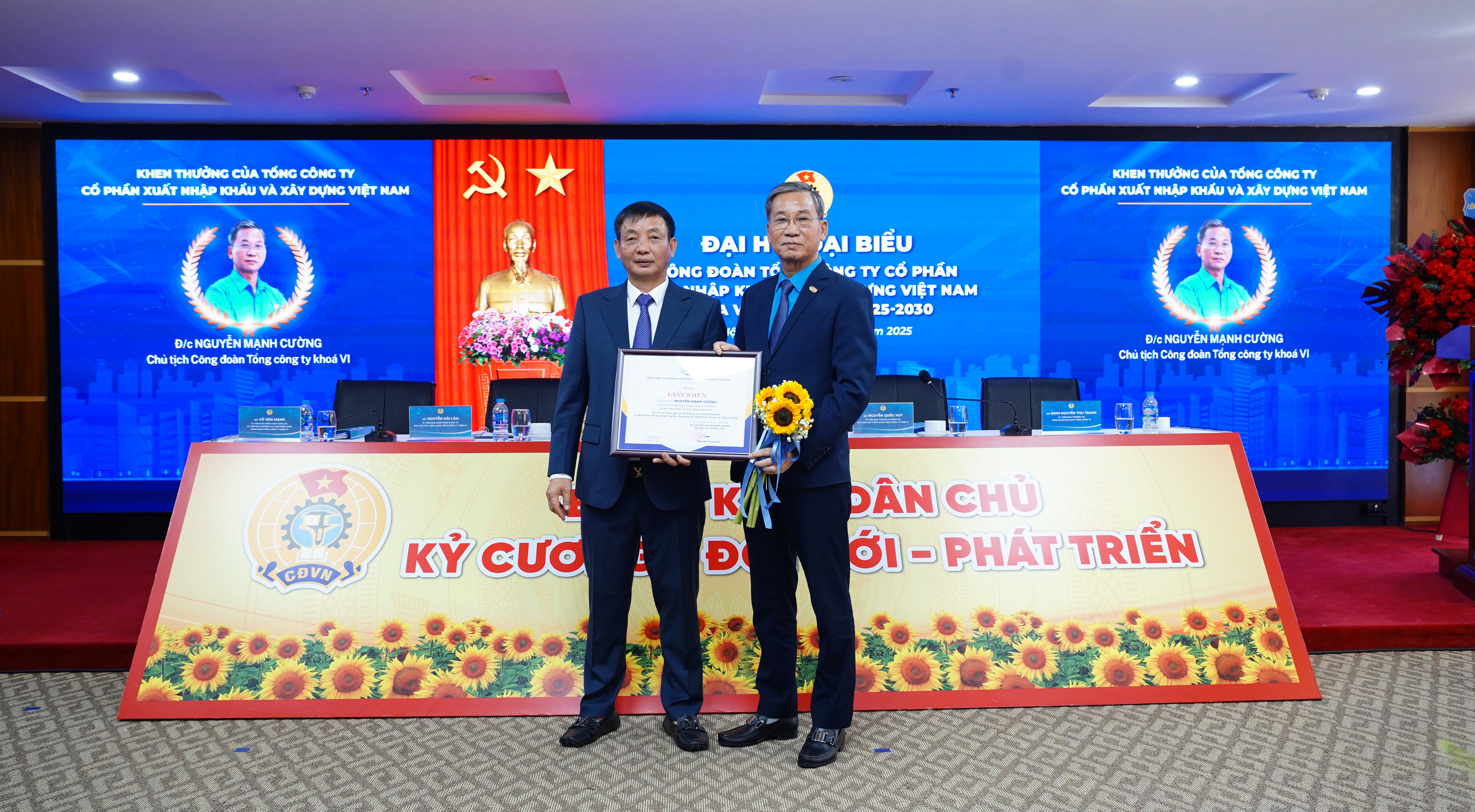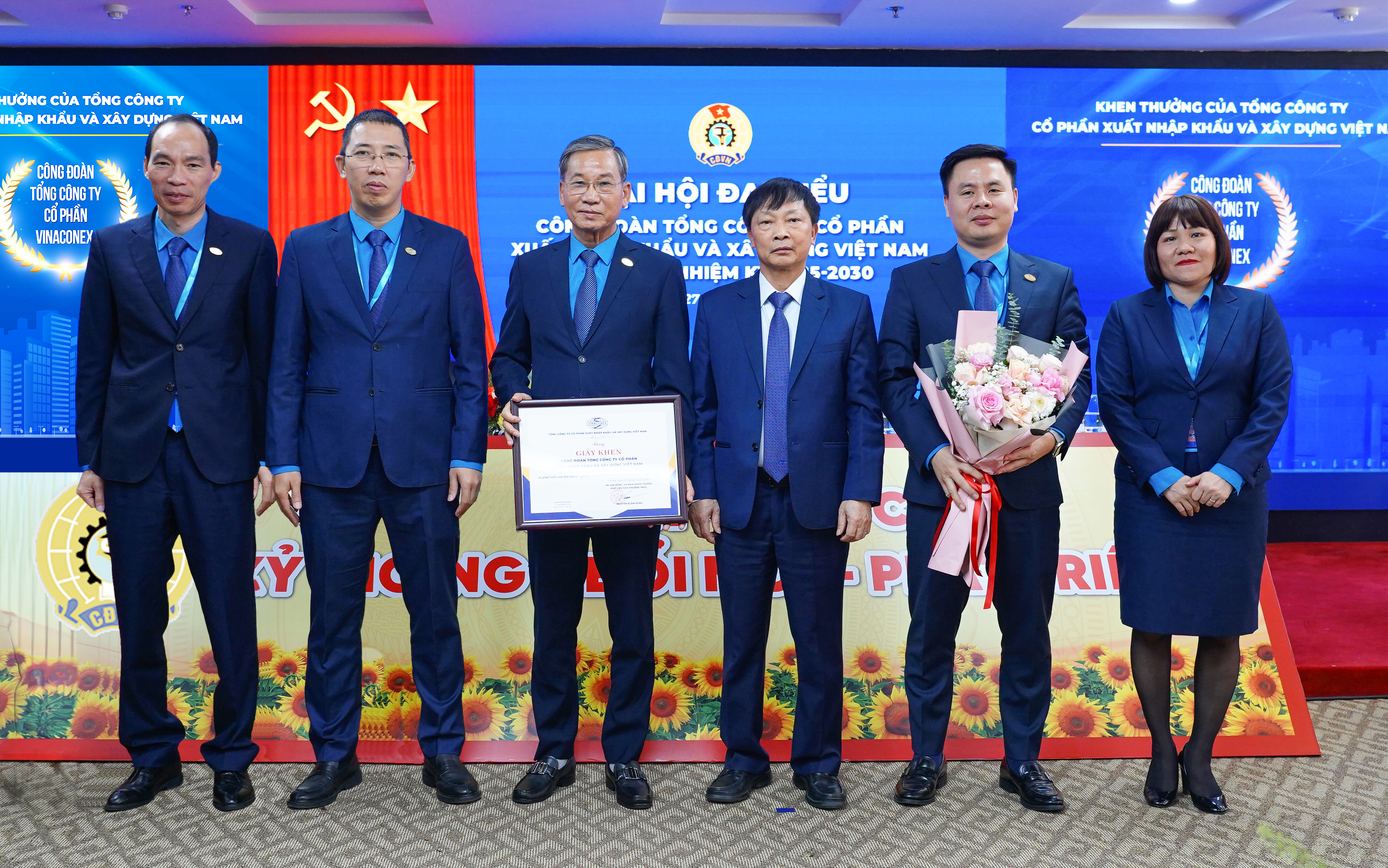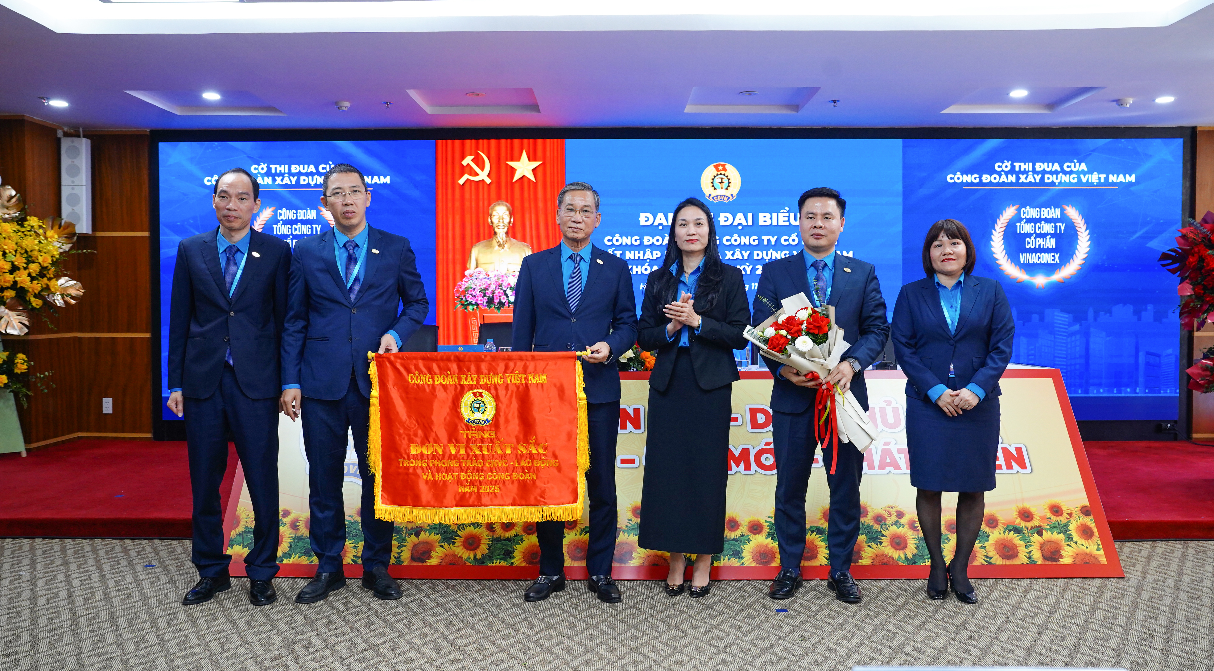 Đặc biệt, đồng chí Nguyễn Mạnh Cường, Chủ tịch Công đoàn Tổng công ty khóa VI đã được trao tặng bằng khen của Công đoàn Xây dựng Việt Nam vì đã có thành tích xuất sắc trong phong trào thi đua lao động giỏi và xây dựng tổ chức công đoàn vững mạnh năm 2025. Đồng chí cũng được Tổng công ty khen thưởng vì đã có nhiều đóng góp cho hoạt động sản xuất kinh doanh và phát triển văn hóa doanh nghiệp VINACONEX.