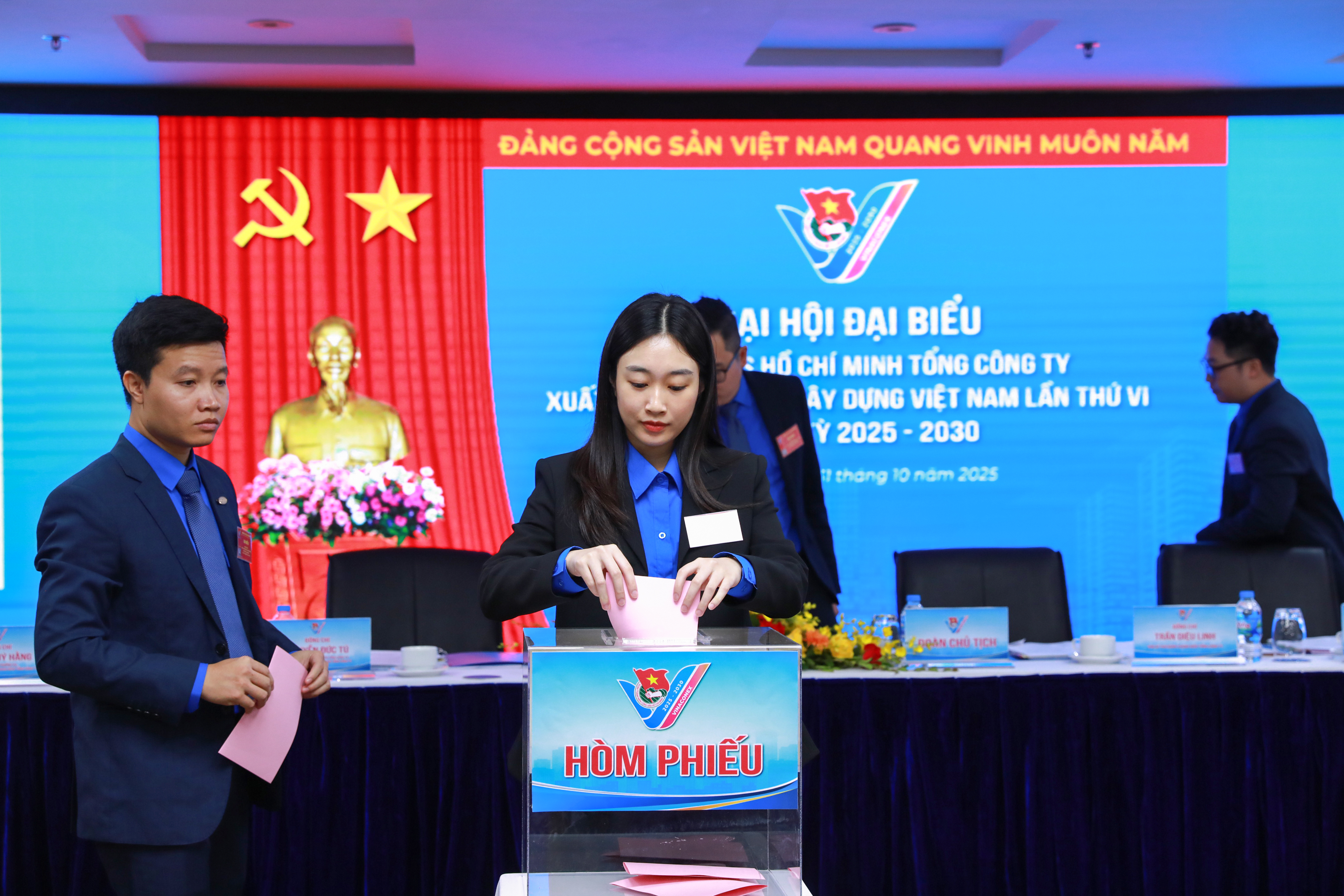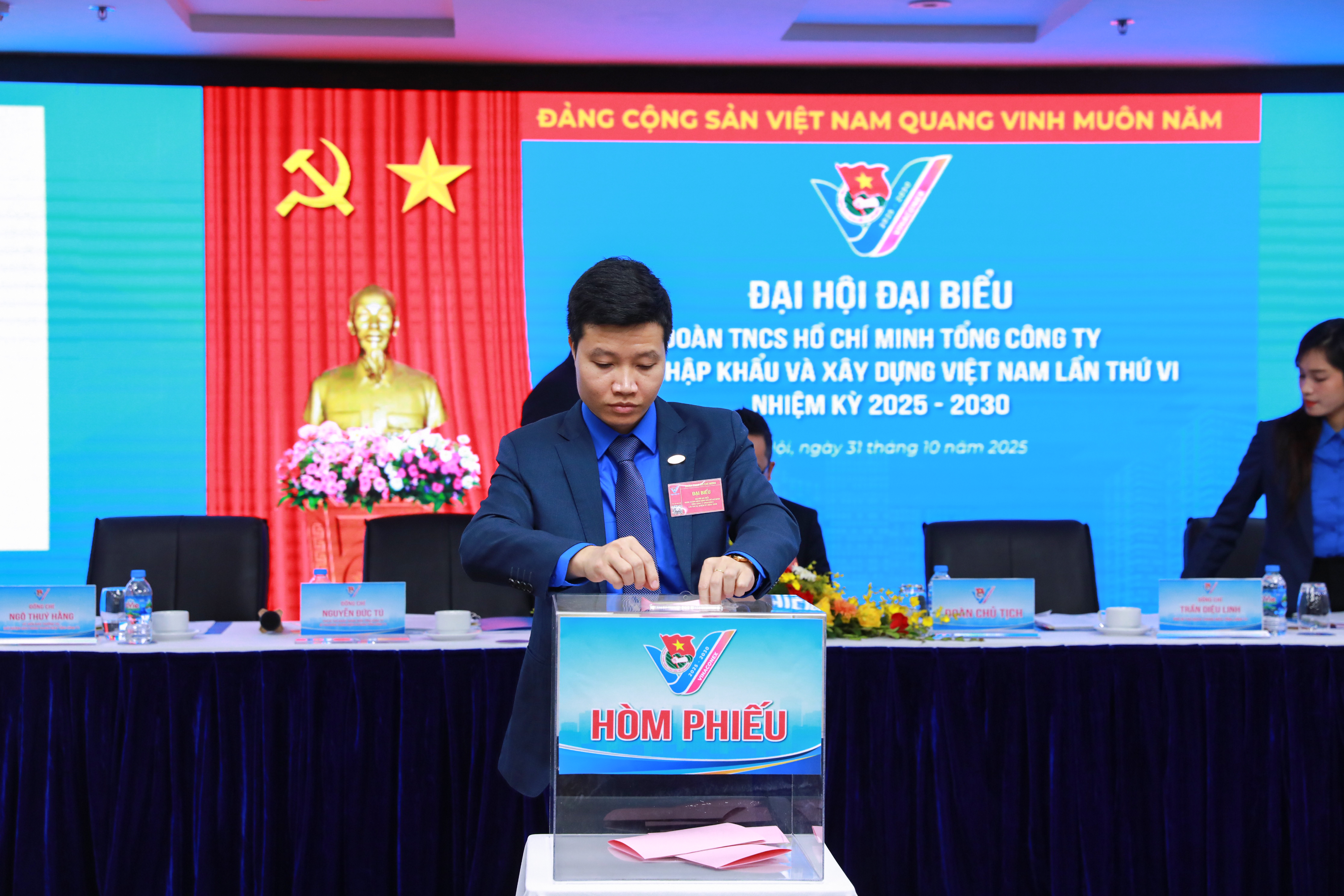Hội nghị Ban Chấp hành khóa VI lần thứ nhất đã tổ chức thành công trong cùng ngày, với tinh thần trách nhiệm, dân chủ Ban Chấp hành Đoàn nhiệm kỳ 2025 - 2030 đã bầu ra 05 đồng chí Ban Thường vụ, 01 đồng chí Bí thư, 02 đồng chí Phó Bí thư, 05 đồng chí Ủy ban Kiểm tra và 01 đồng chí Chủ nhiệm Ủy ban Kiểm tra khóa mới; Với sự tín nhiệm cao, đồng chí Hoàng Thiệu Bảo tiếp tục được tái cử giữ chức Bí thư Đoàn TNCS Hồ Chí Minh Tổng công ty VINACONEX khóa VI.