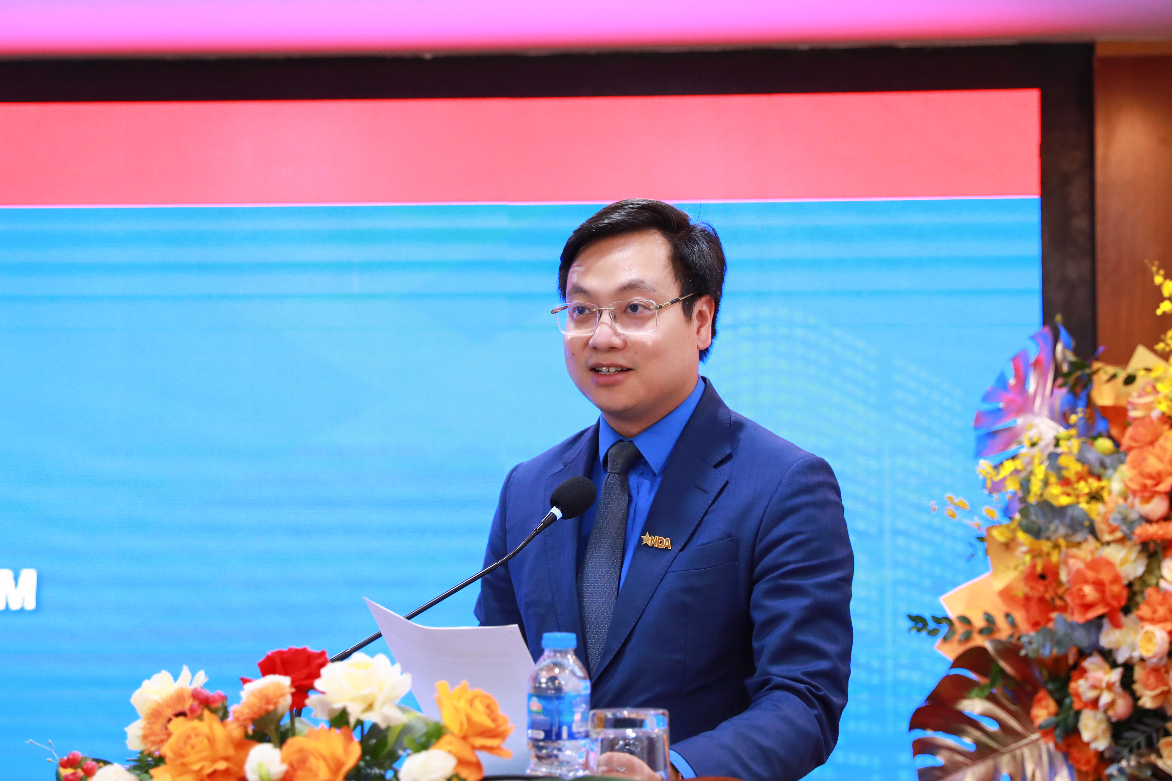 Đ/c Trần Quang Hưng – Phó Bí thư Thành đoàn Hà Nội ghi nhận kết quả nhiệm kỳ 2022-2027 và phát biểu chỉ đạo BCH Đoàn Tổng công ty tại nhiệm kỳ mới.