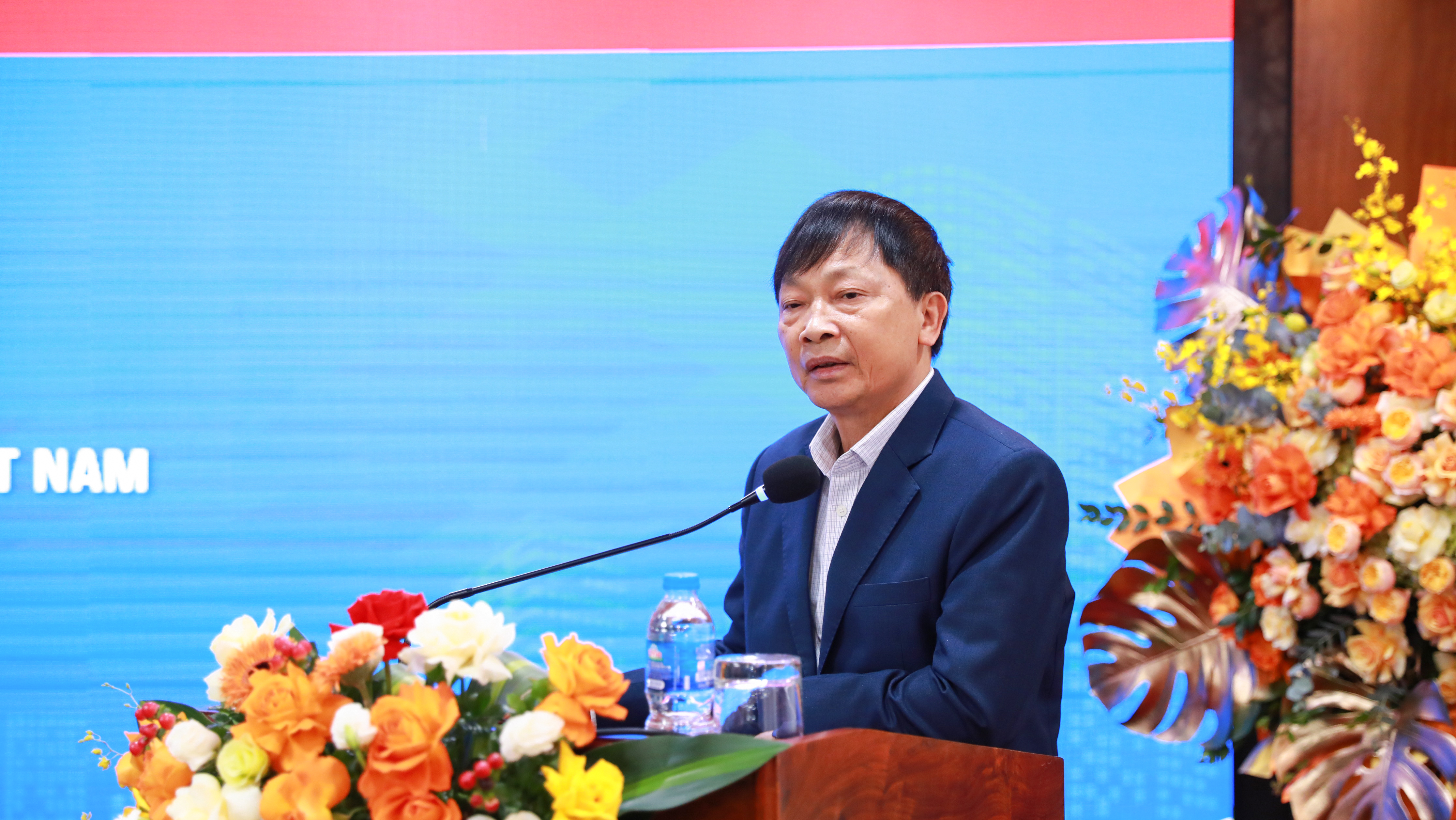 Phía Công đoàn TCT, đồng chí Nguyễn Mạnh Cường - Chủ tịch Công đoàn TCT tặng lẵng hoa chúc mừng.