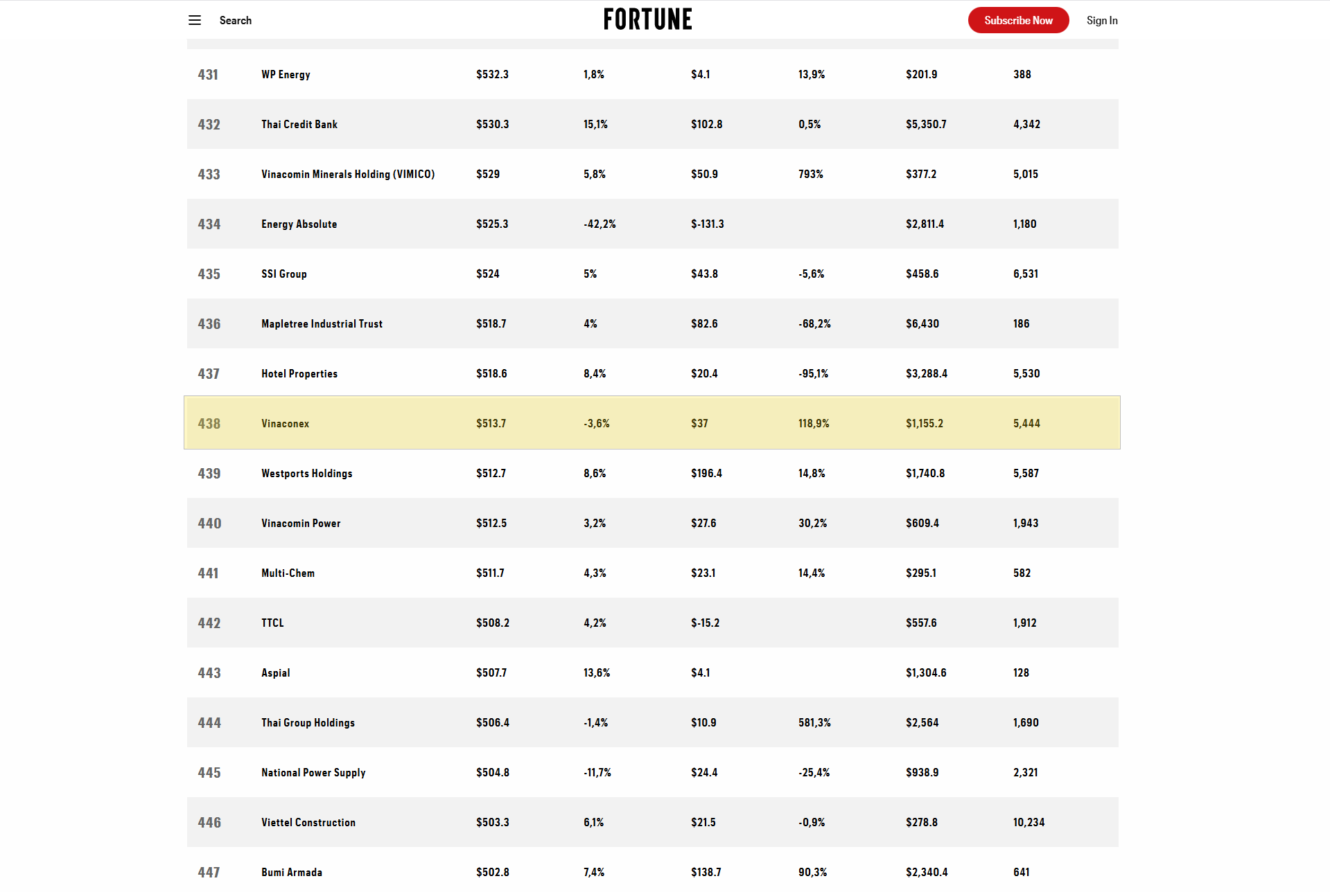 VINACONEX named among 500 largest enterprises in Southeast Asia - Fortune Southeast Asia 500 in 2025