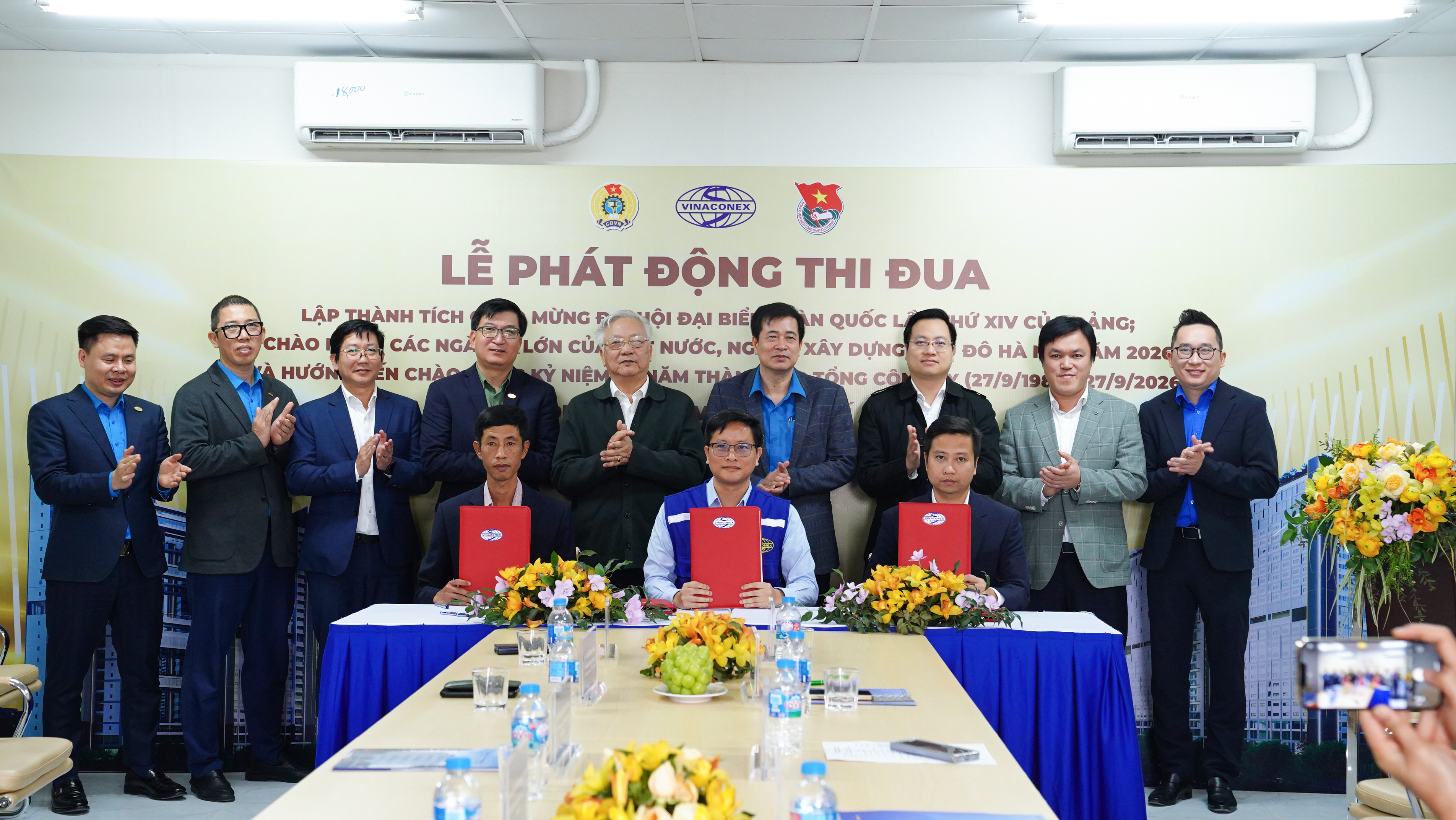 Trước sự chứng kiến của các đồng chí lãnh đạo và đại biểu tham dự, đại diện Ban Tổng giám đốc, Công đoàn, Đoàn Thanh niên Tổng công ty, Ban điều hành và đại diện các đơn vị thi công dự án đã ký kết giao ước thi đua, thể hiện sự thống nhất cao, quyết tâm hoàn thành thắng lợi các mục tiêu đã đề ra.