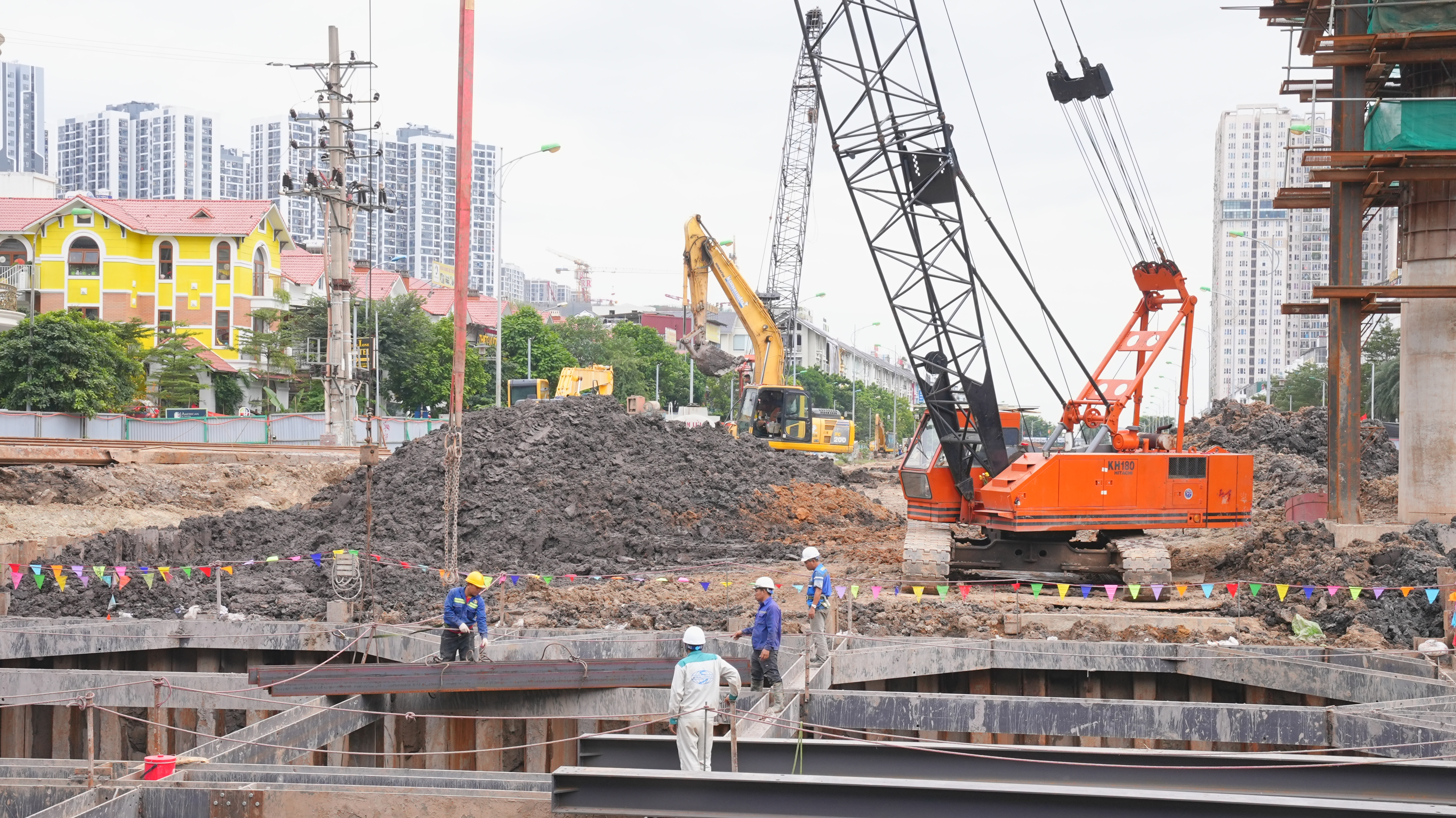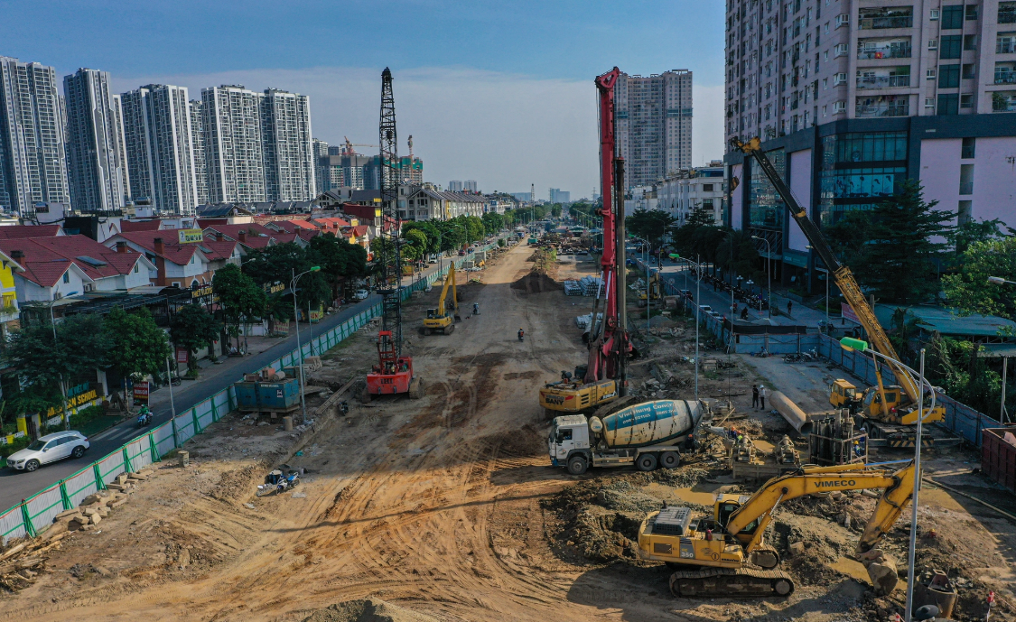 Hạng mục thi công đường và hạ tầng kỹ thuật đã hoàn thành 100% thi công trụ đất gia cố xi măng (CDM). Đào đất nền đường và đắp cát K95 nền đường đạt lần lượt 25 % và 60%.