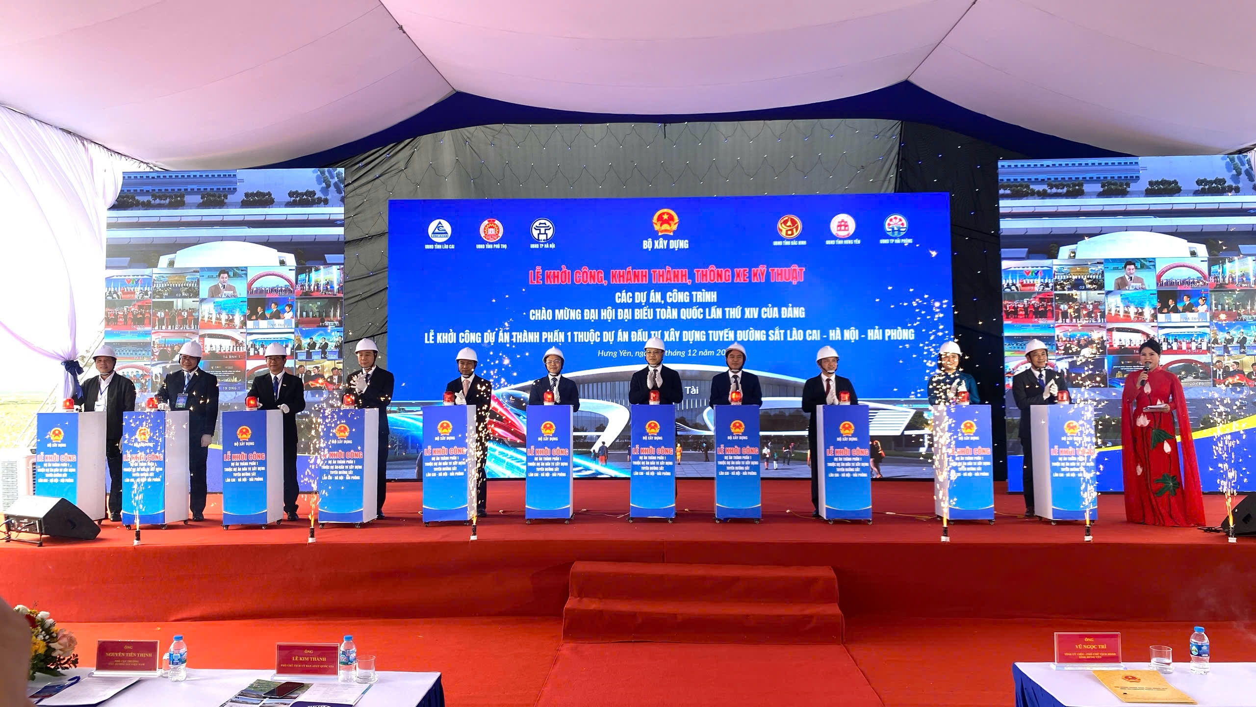 Tại lễ khởi công Ga Lương Tài (Hưng Yên), một trong 5 nhà ga thuộc dự án tuyến đường sắt Lào Cai – Hà Nội – Hải Phòng, Phó Tổng Giám đốc Nguyễn Khắc Hải, đại diện nhà thầu VINACONEX đã cùng các đại biểu thực hiện nghi lễ bấm nút khởi công
