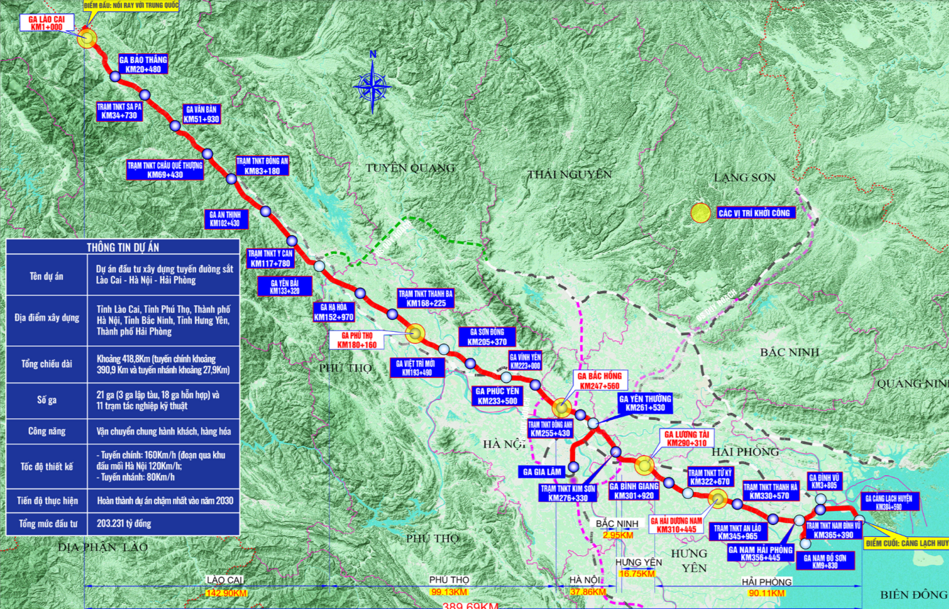 Hướng tuyến đường sắt Lào Cai - Hà Nội - Hải Phòng
