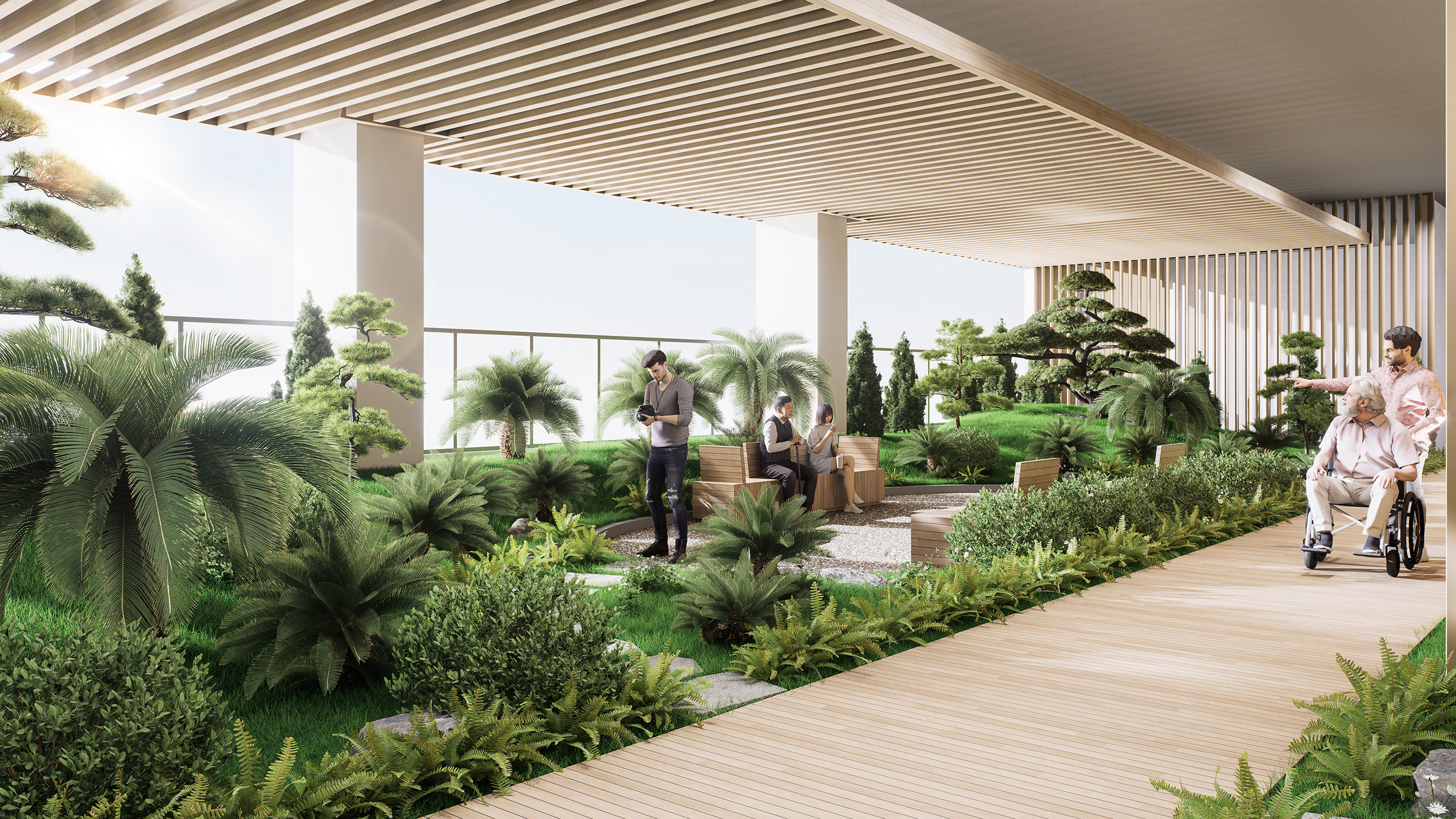Phối cảnh 3D bệnh viện Không gian xanh được bố trí hài hòa trong khuôn viên bệnh viện, mang đến sự thư thái và cảm giác an lành cho bệnh nhân và người nhà.Không gian phòng bệnh hiện đại, sang trọng của Bệnh viện Quốc tế AEGIS.