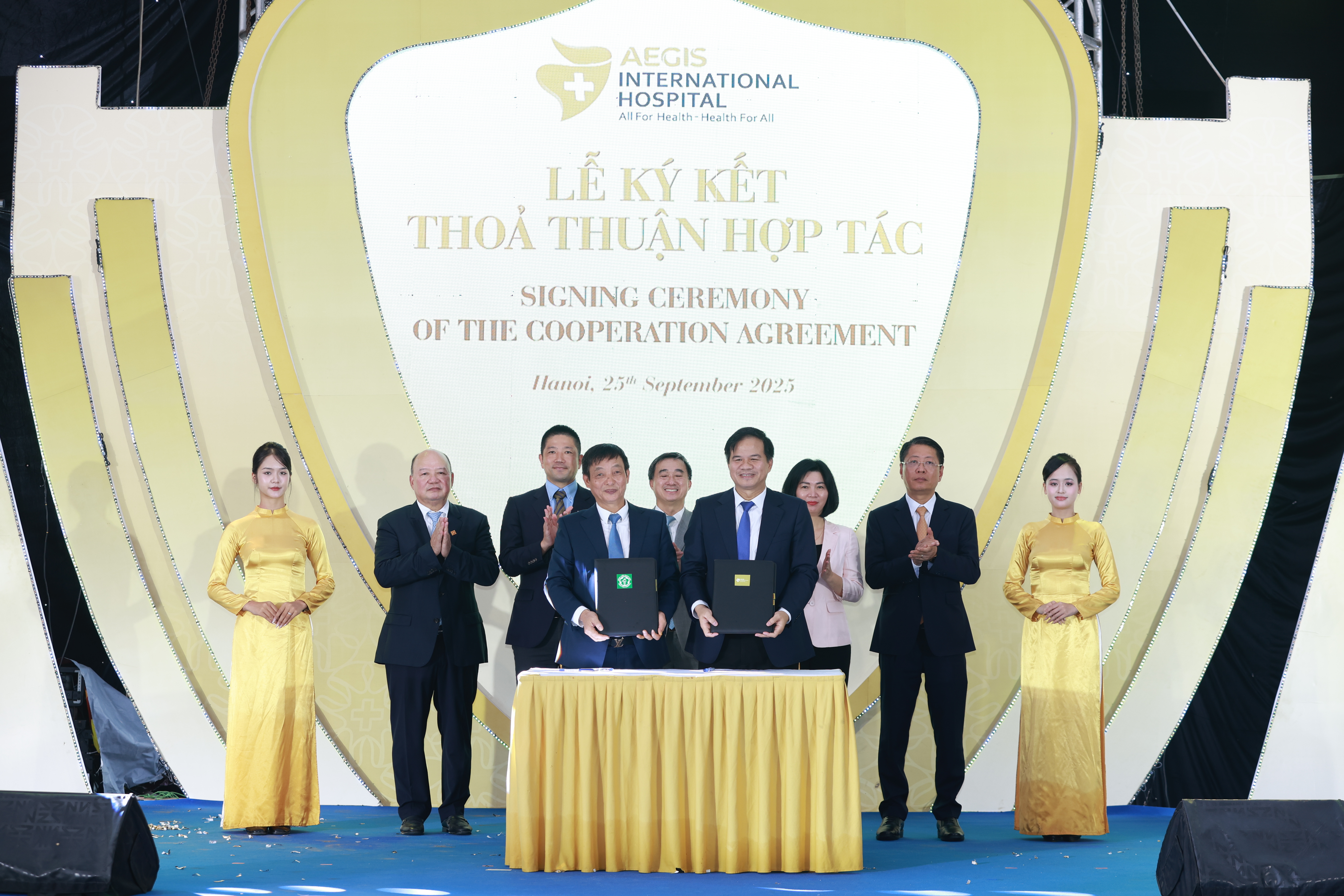 Ông Nguyễn Xuân Đông - Chủ tịch HĐTV Bệnh viện Quốc tế Aegis và PGS.TS Đào Xuân Cơ - Giám đốc Bệnh viện Bạch Mai tiến hành nghi thức ký kết Thỏa thuận hợp tác hỗ trợ chuyên môn, kỹ thuật, đào tạo và chuyển giao công nghệ.Ông Nguyễn Xuân Đông - Chủ tịch HĐTV Bệnh viện Quốc tế Aegis và TS.BS Nguyễn Đức Hùng - Giám đốc Bệnh viện hữu nghị Việt Đức tiến hành nghi thức ký kết thỏa thuận hợp tác hỗ trợ chuyên môn, kỹ thuật, đào tạo và chuyển giao công nghệ.Ông Nguyễn Xuân Đông - Chủ tịch HĐTV Bệnh viện Quốc tế Aegis và GS.TS.BS Nguyễn Hữu Tú – Hiệu trưởng Trường Đại học Y Hà Nội tiến hành nghi thức ký kết thỏa thuận hợp tác. Ông Nguyễn Xuân Đông - Chủ tịch HĐTV Bệnh viện Quốc tế Aegis và PGS.TS Hoàng Văn Hùng – Giám đốc Đại học Thái Nguyên tiến hành nghi thức ký kết thỏa thuận hợp tác. Ông Nguyễn Xuân Đông - Chủ tịch HĐTV Bệnh viện Quốc tế Aegis và PGS.TS Nguyễn Văn Khải - Hiệu trưởng Trường ĐH Y dược Hải Phòng tiến hành nghi thức ký kết thoả thuận hợp tác. Ông Nguyễn Xuân Đông - Chủ tịch HĐTV Bệnh viện Quốc tế Aegis và ông Katsuya Sakagami – Tổng giám đốc Công ty cổ phần SMC tiến hành nghi thức ký kết thỏa thuận hợp tác. Ông Nguyễn Xuân Đông - Chủ tịch HĐTV Bệnh viện Quốc tế Aegis và Ông Trần Quốc Dũng - Tổng giám đốc Công ty CP tập đoàn OmiGroup tiến hành nghi thức ký kết thỏa thuận hợp tác.